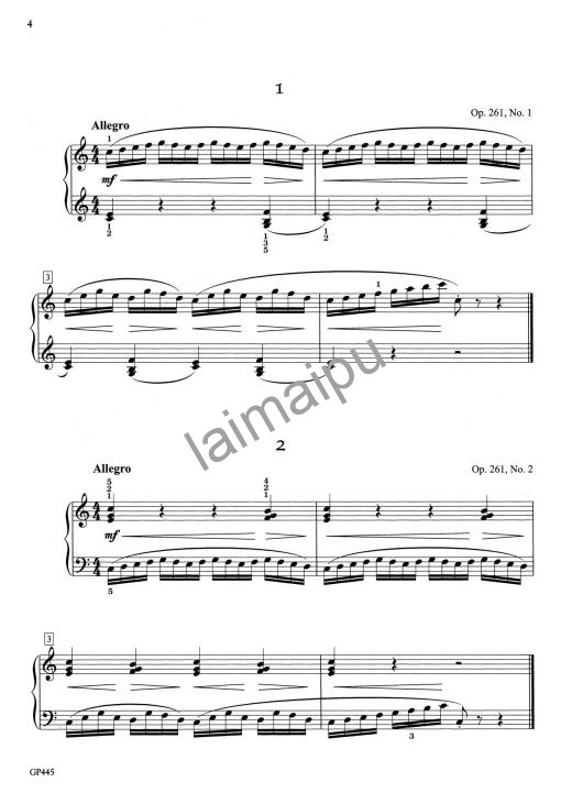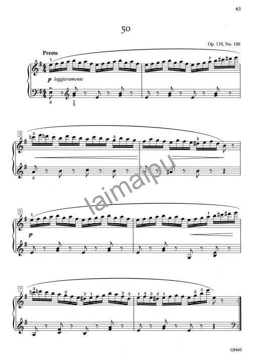 德国钢琴家兼音乐学家杰莫(Heinrich Germer)出生于1839年,在他18岁时车尔尼逝世,他正好见证了车尔尼体系的硕大成功(自己也得力于使用车尔尼的练习)。他在几乎使用原谱、只添加力度、圆滑线与踏板的状况下,从车尔尼op. 139, 261, 599, 821之中挑选了50首短练习曲,从初中级快速进入中级水平。在这些卷中发现的渐进式难度,为各年龄段的钢琴学习提供了最佳的车尔尼研究方法。由斯耐尔编订。