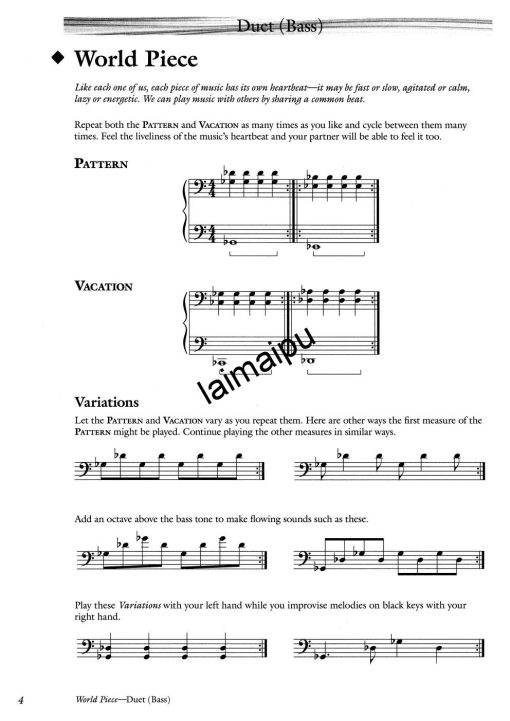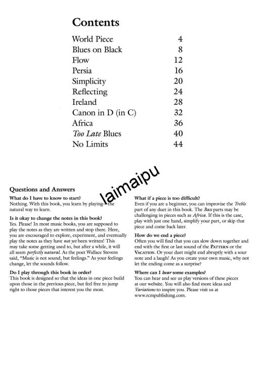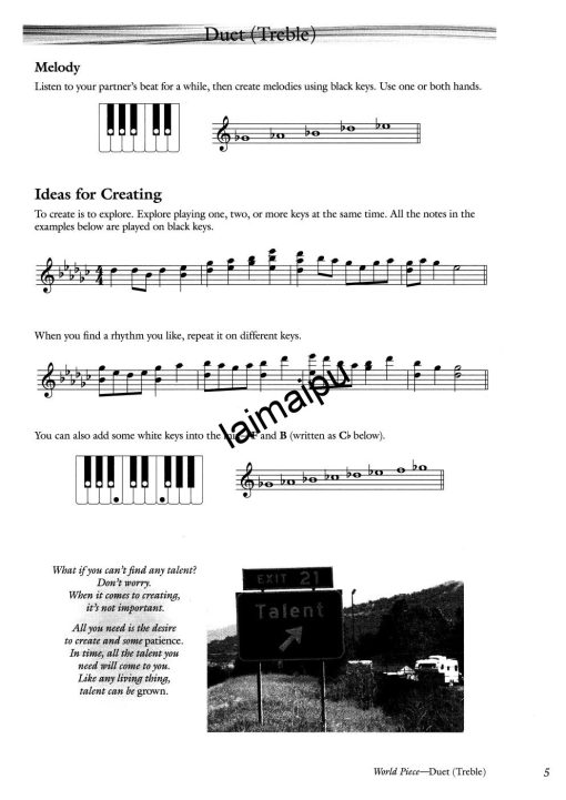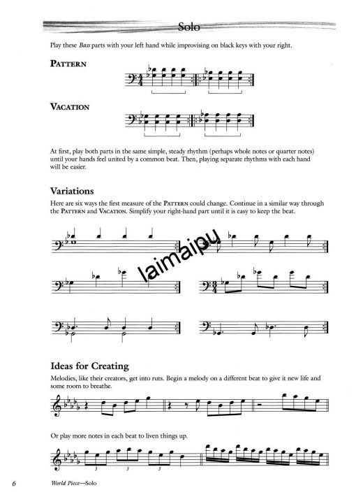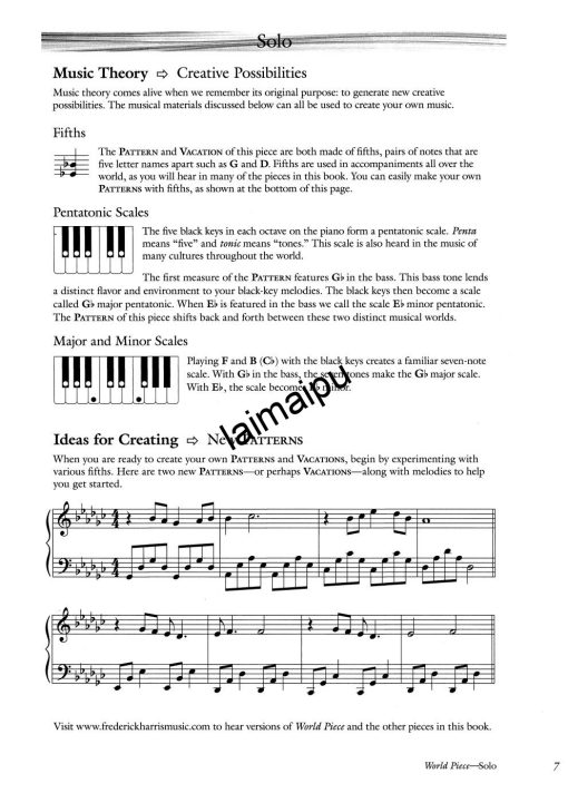 即兴模式弹奏1探索了世界音乐(波斯、爱尔兰)、古典音乐和流行音乐的风格,并介绍了所有黑调和白调的即兴演奏,大调、小调和蓝调的音阶、音程和三和弦。