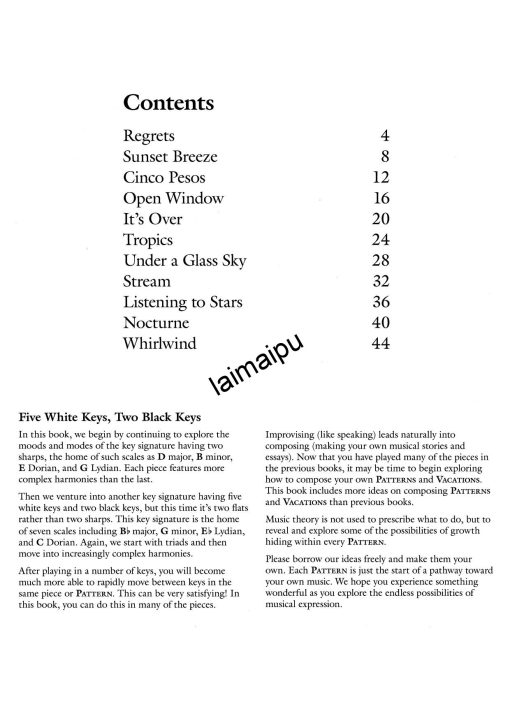 Pattern Play 5探索了用两个升或降的调号的情绪和模式,教学生如何在同一乐曲中用不同的调号即兴演奏,并教你如何创造自己的花样和变奏曲。