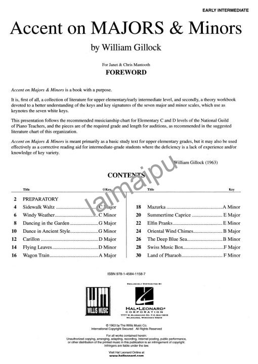聚焦大小调是一本收录了14首初学后期到中级早期的吉洛克原曲,如Sidewalk Waltz、Summertime Caprice和Swiss Music Box。本书同时也是一本理论工作手册,可以确保更好地理解每一个大调和小调。在每首曲子前都有其音阶、调式中的和弦和终止式,学生在开始每首曲子前还需要写上调号。
