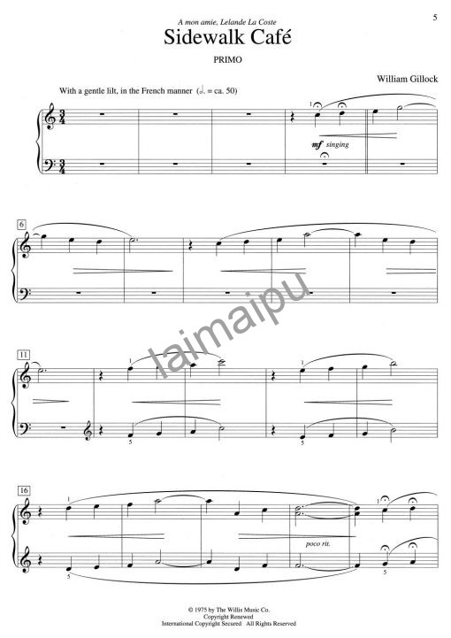 喜欢吉诺克的作品,都很好听,很期待这本四手联弹!