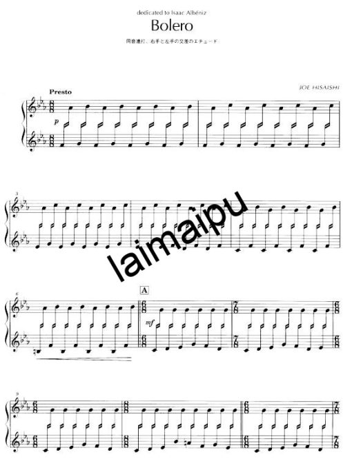 练习曲难度较大,适合高级别学生,旋律也特别好听,不会因为练习曲而枯燥!不过有些曲目的篇幅跟cd会有所出入,会比cd的难度低,据说是久石让大师自己修订的。