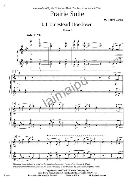由俄克拉荷马州音乐教师协会委托创作的《草原组曲》由三个乐章组成,均以其独特的风格编写。从第一乐章的 “Hoedown风格”,到第二乐章的抒情和旋律,再到第三乐章用7/8拍子写出的令人兴奋的节奏挑战,这套曲子绝对会成为你工作室的最爱之一。