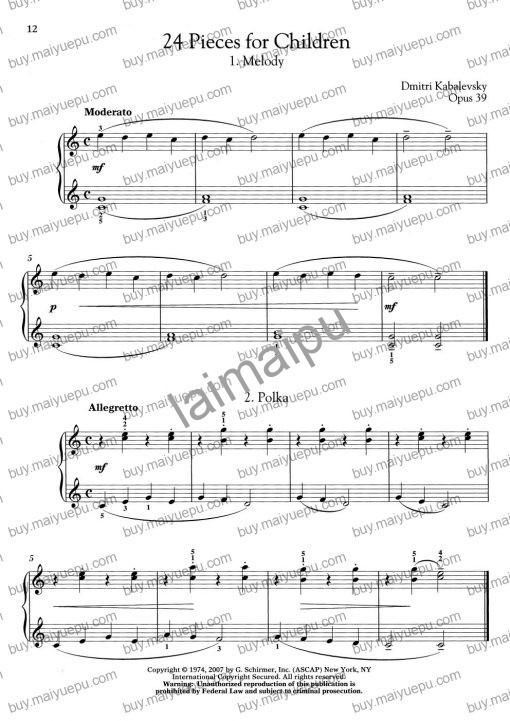 🔊 卡巴列夫斯基: 24首儿童钢琴曲,作品39 (Kabalevsky: 24 Pieces for Children, Opus 39)