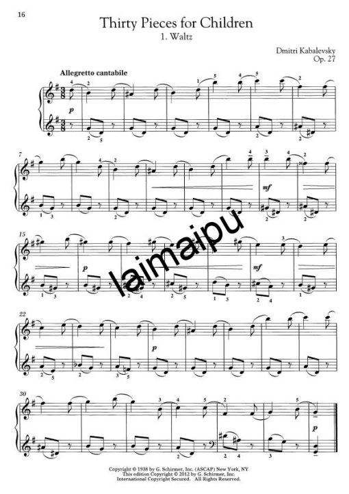 👍🔊 卡巴列夫斯基: 30首儿童钢琴曲,作品 27 (Kabalevsky: Thirty Pieces for Children, Op. 27)
