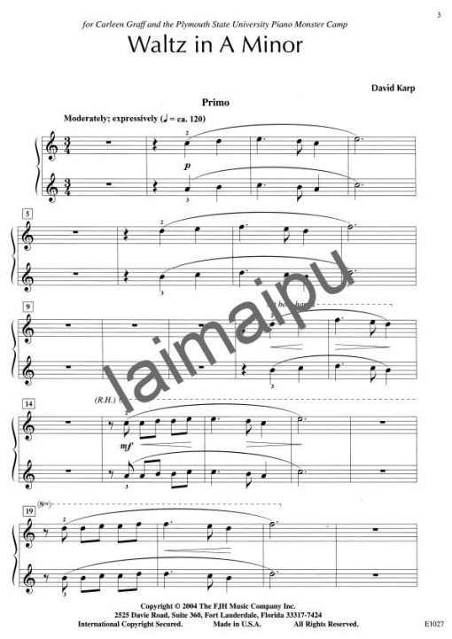 4级、5级、外文乐谱、单曲 (一本谱只有一个作品)、钢琴 (一台琴)、2人、四手联弹、David Karp | 卡尔普、The FJH Music Company Inc、FJH Piano Ensemble Series