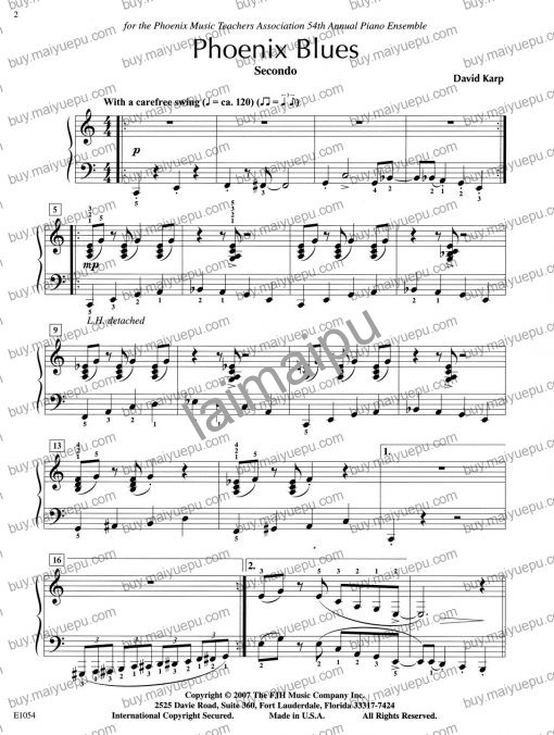 👍 卡尔普: 凤凰蓝调 (四手联弹) (David Karp: Phoenix Blues)