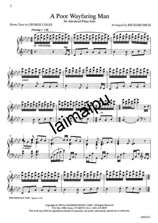 有示范、5-6级、钢琴独奏、赞美诗改编曲,为简单到中级水平而编排。