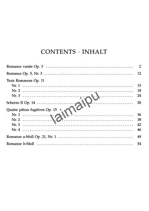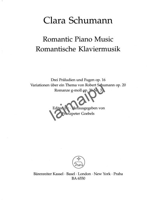 许多人都听过克拉拉的名字,但确没有听过她的作品。她创作不少沙龙音乐作品,无论是三重奏或钢琴独奏的作品,都很动听。这套谱集收录他的浪漫曲、前奏与赋格、以及变奏曲等具代表性的作品。这类特性小品也是她所擅长写作的风格,展现了她较少为人所知,但确十分优秀的作曲才华。
