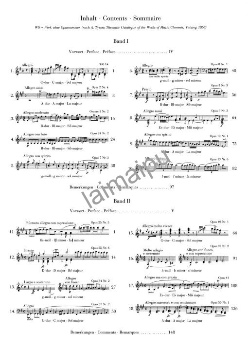 克莱门蒂比莫扎特早出生4年,比贝多芬多活了5年。因此,这位意大利钢琴家兼作曲家帮助塑造了整个古典音乐时代。然而,他的教学成果 “Gradus ad parnassum”(艺术津梁)往往会对他作为艺术家所享有的声誉产生负面影响,而我们的第一卷克莱门蒂的钢琴奏鸣曲应该有助于纠正这种情况。这十首难度适中的作品让我们得以一窥克莱门蒂在1768至1785年间的奏鸣曲创作。他对乐曲写作的细微之处的偏爱和弦乐艺术在这里与正式和庄重的古典主义相融合。我们精心修订的原典版是以17世纪70年代和80年代出版的这些作品的第一版为基础。