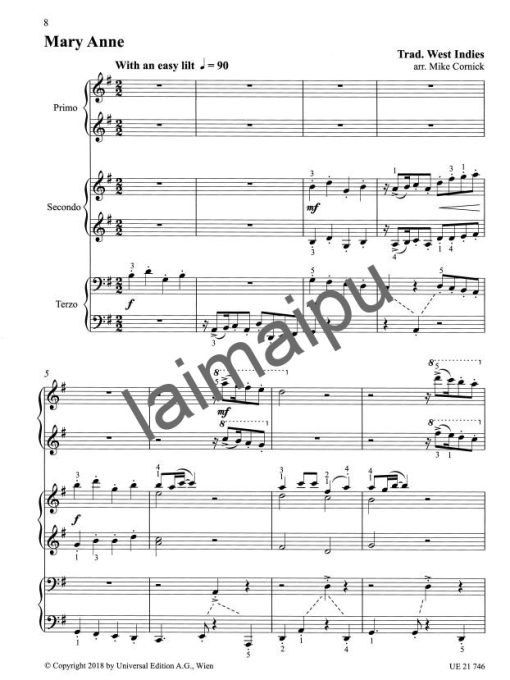 👍 科尼克: 为 6 手联弹所写的 4 首加勒比黑人小品 (Cornick: 4 Afro-Caribbean Pieces for 6 Hands at 1 Piano)