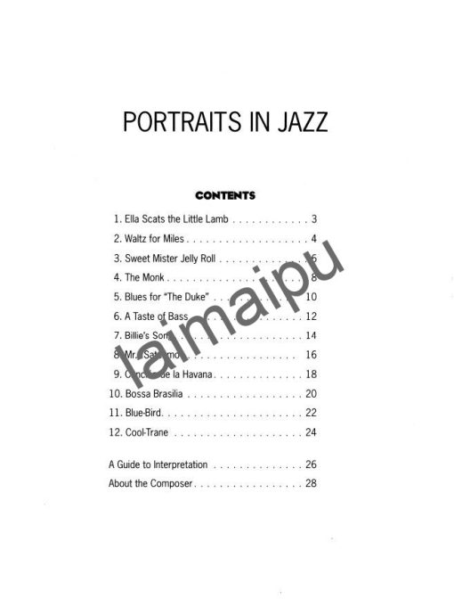 本书集结各种爵士曲风并以名家如艾灵顿公爵、比莉·荷莉戴、艾拉·费兹杰拉等人之作品为素材,适合中集程度学生作为接触爵士经典之练习。