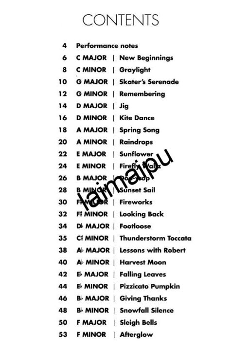 Circles收录了Phillip Keveren的24首原创个性练习曲,代表了所有12个大调和小调。这些简短的独奏曲情感范围很广,每首曲子的演奏都绝对令人愉悦。这套曲子的灵感来自于生活在北半球的人(Keveren长大的地方)的历月观点,因此C大调练习曲也被命名为 “新的开始”,而倒数第二首F大调练习曲则被称为 “Sleigh Bells”。可作为一套曲子,在选定的调上演奏,也可单独演奏。