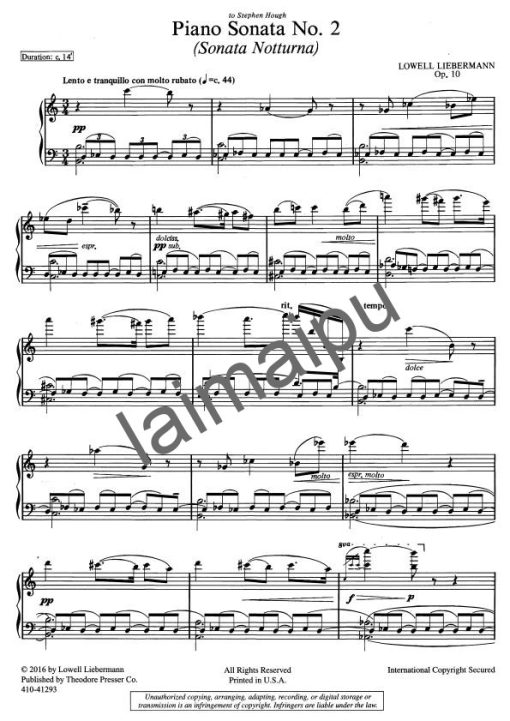 利伯曼: 第二号钢琴奏鸣曲 (Liebermann: Piano Sonata No. 2)
