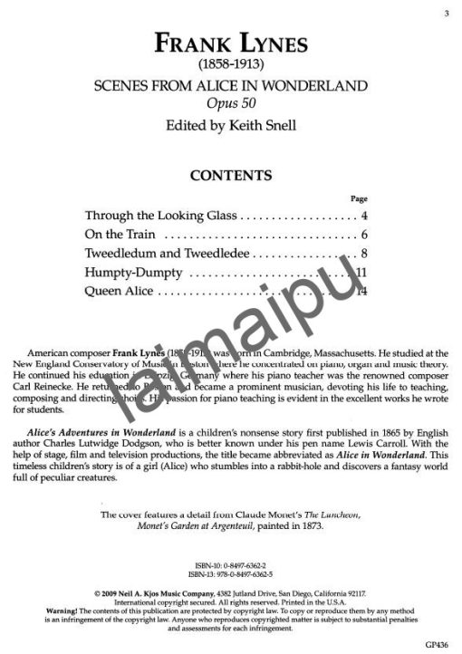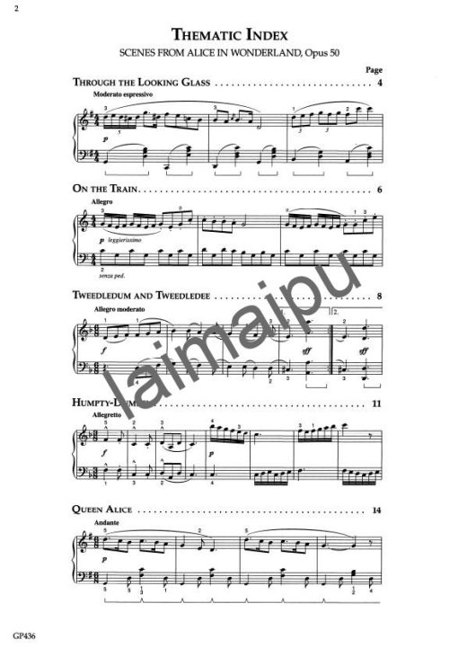 以英国著名《鹅妈妈童谣》中特伟哥和特伟弟为主角,二人长的一模一样(爱丽丝想道他们脖子领边后一定写着特像)。这二人唱唱跳跳,特伟弟背起很长的《海象与木匠》诗。一股鼾声传来,是在睡觉的红国王。特伟弟告诉爱丽丝国王正梦见她,爱丽丝不过是他的梦。两兄弟突然为了一个坏掉的手摇摇吵了起来,然后展开决斗。两人以奇怪的东西为盔甲和武器(例如锅碗瓢盆、地毯等),不过在特伟哥看见乌鸦来了以后两人就一溜烟地跑了。乌鸦煽起一股大风,爱丽丝抓住了一个不知哪儿飞来的披巾。