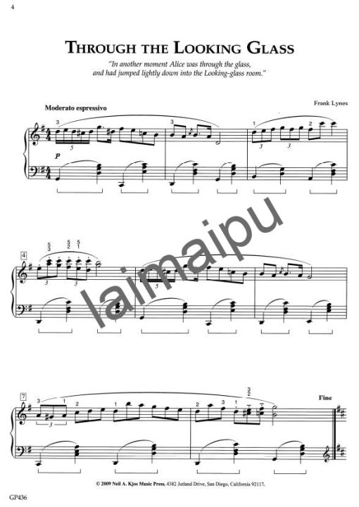 一天,爱丽丝正和家里的小黑猫玩着(另一只大黑猫则在玩毛线球),并愉快的和小猫“聊天”(当然,只有她在自言自语)。不一会,话题带到了房间的镜子和国际象棋上。爱丽丝爬到壁炉台上,不知不觉就穿越了镜子,到达另外一边的房间。原先房间里的国际象棋子活了过来,小小的红国王和皇后在壁炉附近散步。爱丽丝戏弄了他们,然后在房间里找到一本书,这本书以左右相反的文字写成(因为在镜子里),于是爱丽丝取了面镜子来看,书里面写的是一首名为《杰伯沃基》的诗。爱丽丝之后离开了房间。