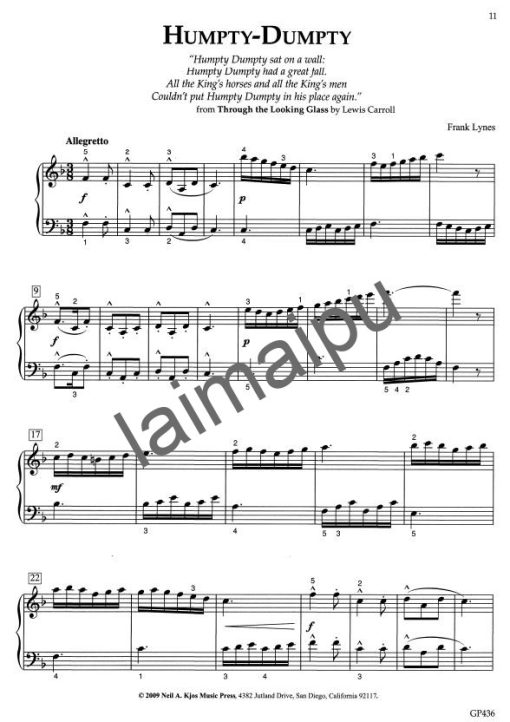同样以英国著名《鹅妈妈童谣》中矮胖子为主角,当爱丽丝走近鸡蛋时,那蛋变成一个长的像蛋、名叫矮胖子的人。他和爱丽丝针对语意学展开一连串抬杠,并替她解释了《杰伯沃基》的一部分意思,然后背了首突然中断的诗给爱丽斯听。