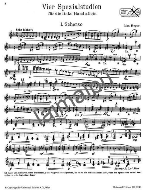 🔊✋ 雷格: 给左手的四首特殊练习曲 (Reger: 4 Special Studies for the Left Hand)