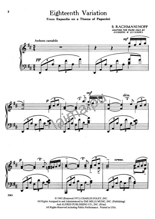举世闻名的拉赫玛尼诺夫第十八变奏曲,可能与任何喜爱的独奏一样,在钢琴和独奏会上大放异彩–它是最畅销的钢琴独奏,是独奏会的最佳选择。Eichorn的转录忠实地保持了原来的安排。