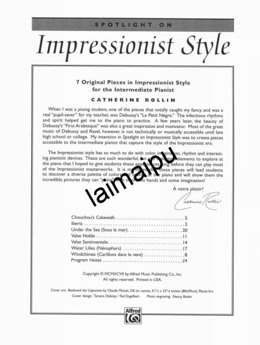 罗琳为了中级即将弹奏德彪西的习琴者,创作印象风格的桥接曲目。