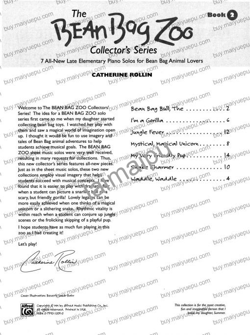 每个作品标题都与动物有关,孩子们会很喜欢这些动物,也因此会喜欢弹奏这些音乐