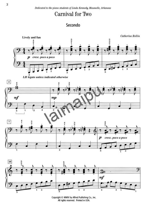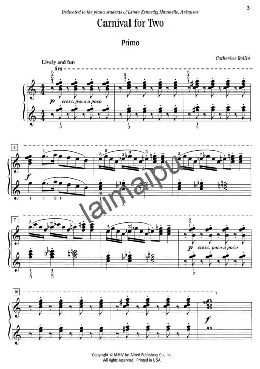 在这首二重奏中,两部分的音阶段落、十六分音符和离拍的和弦都有特色,有助于创造生动有趣的演奏体验。2016-2020年联邦音乐节精选作品。