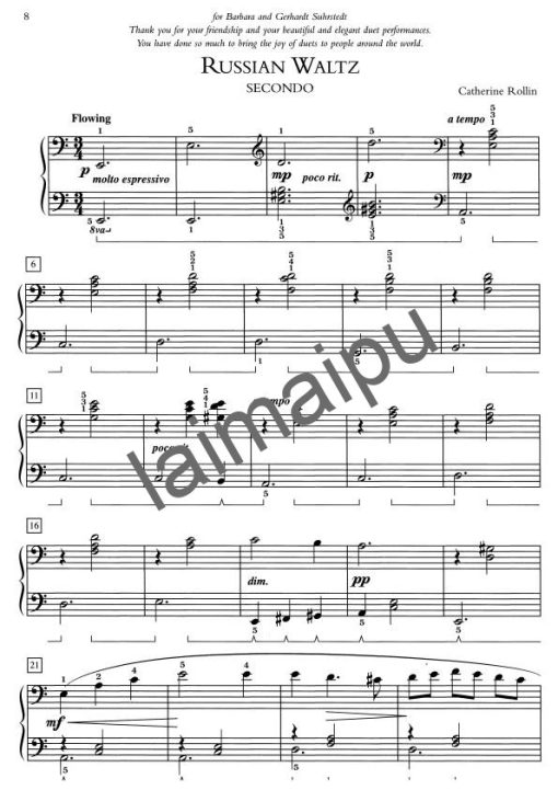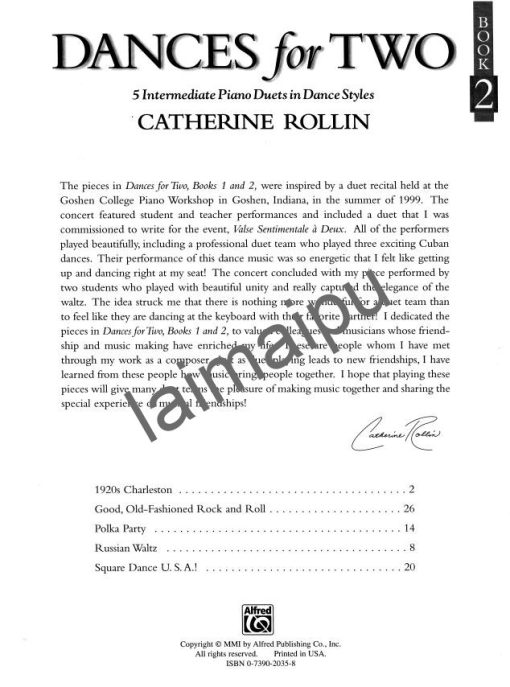双人舞曲系列中的所有作品都旨在捕捉舞曲的节奏精髓,正如两个舞伴在同步时发挥最佳效果一样,以美妙的节奏产生化学反应演奏四手联弹也同样美妙!