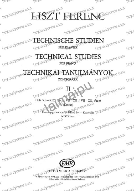 李斯特的一系列练习曲,旨在保持或进一步完善已经达到最高水平的钢琴技巧。评论注释使人们能够研究,除此之外,还有各卷资料之间最重要的差异。专题索引提供了《技巧练习曲》所有三卷的内容概览。