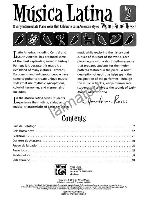 在Musica Latina系列中,学生将体验拉丁美洲音乐的节奏、风格和音乐特点。每首作品都以简短的节奏练习开始,让学生为作品中的节奏模式做准备。每首乐曲的简要说明有助于激发演奏者的想象力。第2册是为中级初期水平的钢琴学生编写的。