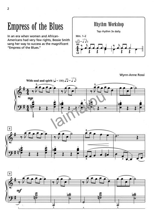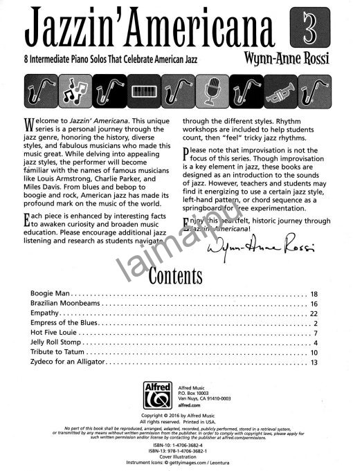 Wynn-Anne Rossi的Jazzin’ Americana系列是一次穿越爵士乐流派的个人旅程,向历史、多样化的风格以及使这种音乐变得伟大的美妙音乐家致敬。学生将熟悉路易斯-阿姆斯特朗(Louis Armstrong)、查理-帕克(Charlie Parker)和迈尔斯-戴维斯(Miles Davis)等著名音乐家的名字,同时学习不同的爵士乐风格,从蓝调和比波普(bebop)到波吉(boogie)和摇滚。每首曲子都能唤起学生的好奇心,增强音乐体验。