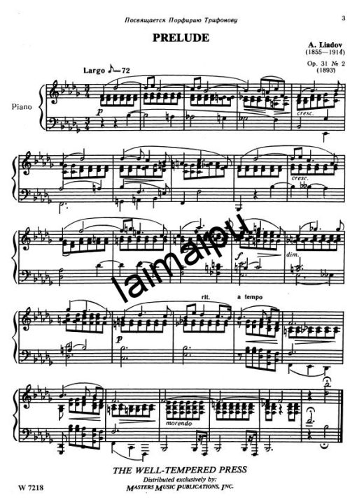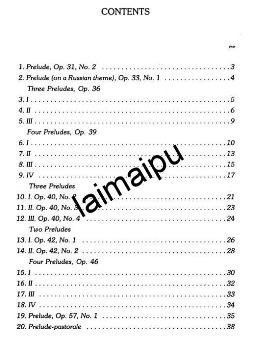 收录利亚多夫于各作品中之前奏曲,集结成共两册的前奏曲集。