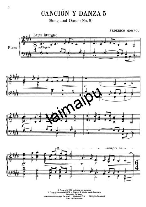 蒙波: 歌曲与舞蹈 第 5-8 首 (Frederic Mompou: Canciones y danzas – Nos. 5, 6, 7, 8)