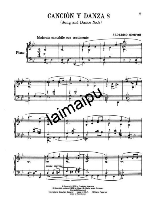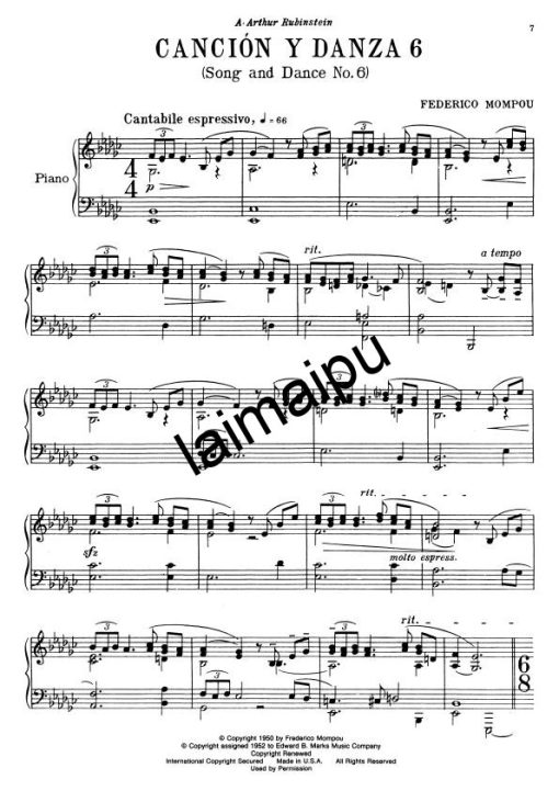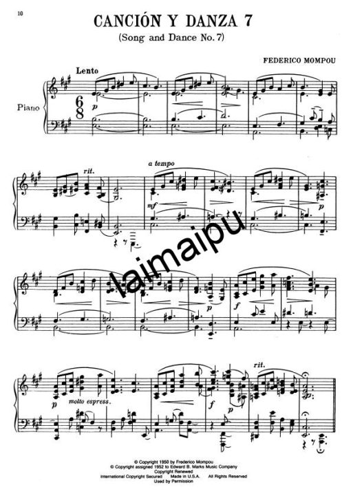 7级、8级、一般乐谱 (包含多首作品)、示范、外文乐谱、钢琴 (一台琴)、1人、独奏、古典音乐 (近现代乐派)、Mompou, Frederic | 蒙波、Hal Leonard