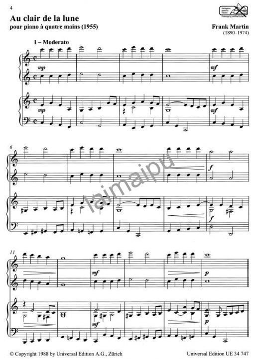 来自瑞士著名作曲家弗兰克-马丁的作品,环球版推出了为他的妻子和女儿所写的一首简单、悠扬的作品。适合1级学生与老师合奏、老师分部为中级水平。