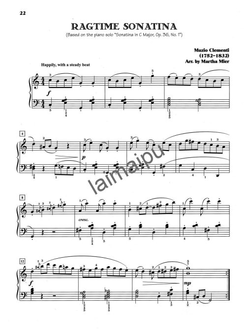 - Ragtime Sonatina, based on Sonatina in C Major, Op. 36, No. 1 by Clementi 《拉格泰姆小奏鸣曲》,改编自克莱门蒂《C 大调小奏鸣曲,作品 36 第 1 首》