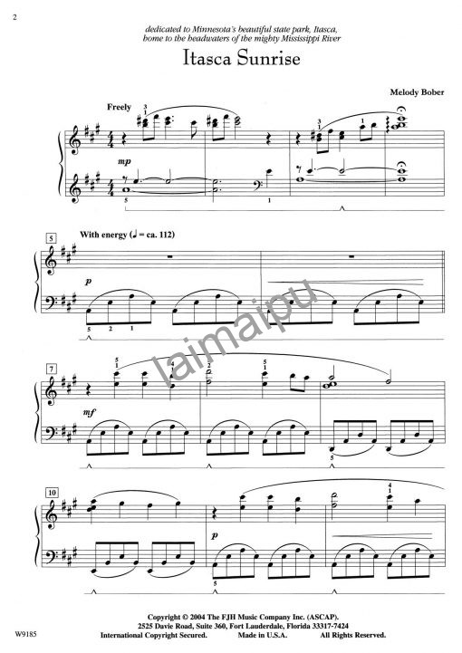 这首曲子是为明尼苏达州美丽的同名州立公园而作的,它是强大的密西西比河的源头。艾塔斯卡的日出在开头部分捕捉到了黎明的曙光,此后无忧无虑地运行。Melody Bober美妙的开放式钢琴声和流畅的左手慢板伴奏,把听众带到了一个美好的记忆中的时间和地点。真是太美了。