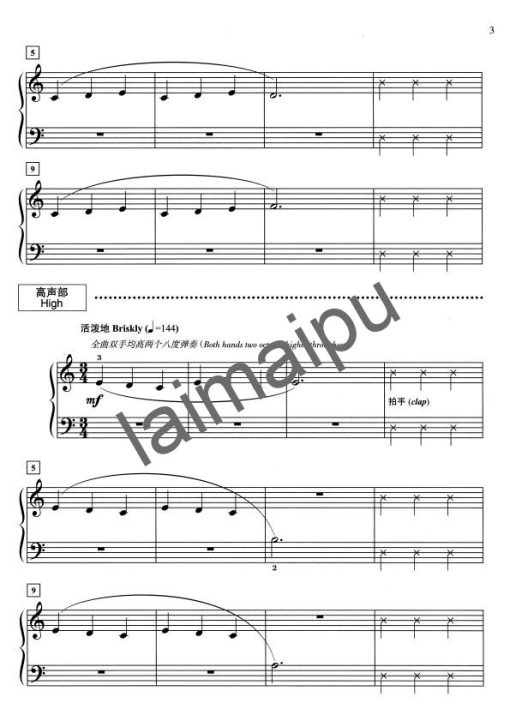 原文书名为:Grand Trios for Piano: 4 Early Elementary Pieces for One Piano, Six Hands