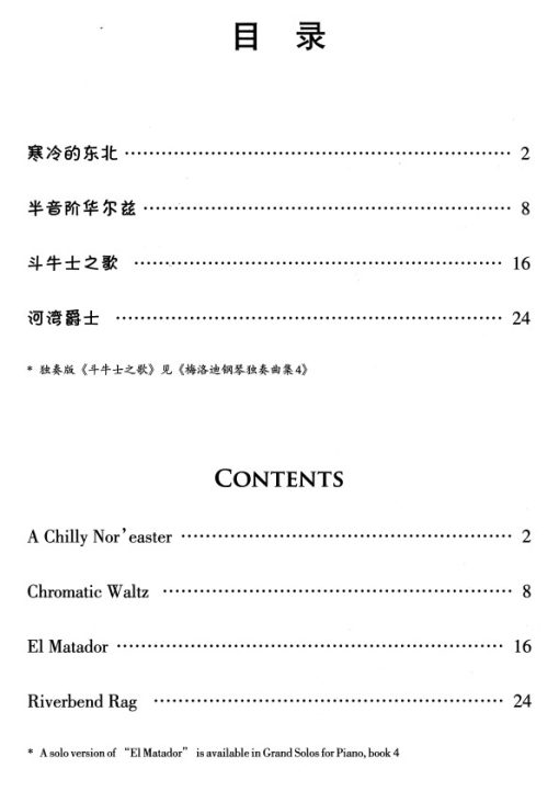 原文书名为:Grand Trios for Piano, Book 5: 4 Intermediate Pieces for One Piano, Six Hands