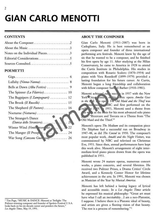 🔊 梅诺蒂: 诗集-给儿童的12首小品 (Menotti: Poemetti)