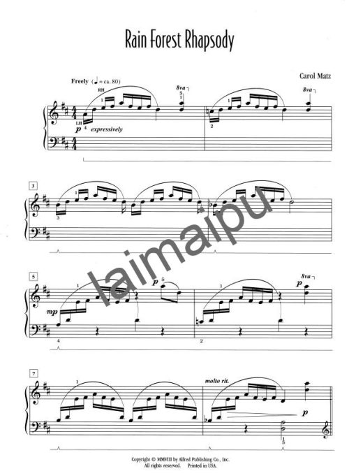 此曲也被收录在Carol Matz’s Favorite Solos, Book 3之中