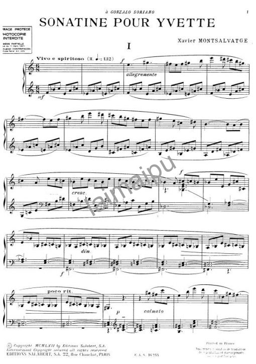 🥇🔊🎞⬇ 蒙札瓦切: 给伊薇特的小奏鸣曲 (Xavier Montsalvatge: Sonatine Pour Yvette)
