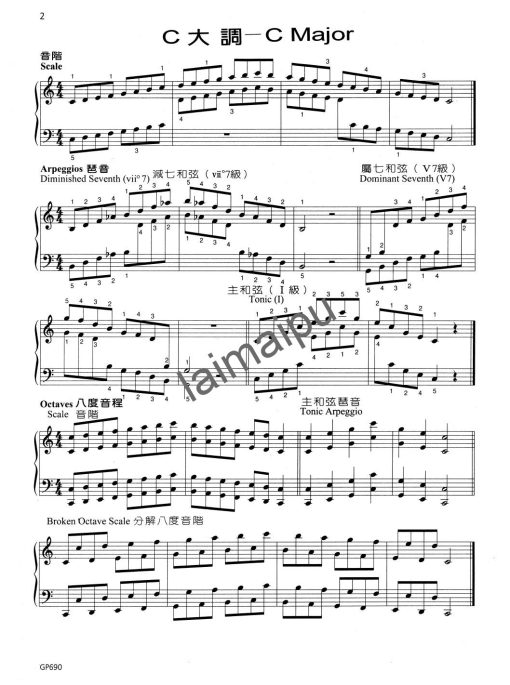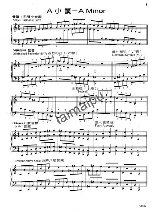 - Scales, Arpeggios (Diminished 7th, Dominant 7th, & Tonic), Octaves (Scale, Tonic Arpeggio, Broken Octave Scale)