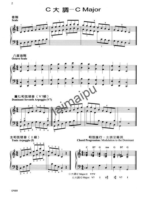 - Scales, Octave Scales, Dominant 7th Arpeggios, Tonic Arpeggios, Chord Progressions: Modulation to the Dominant