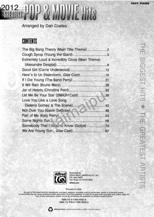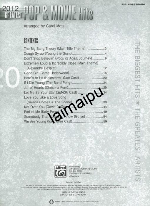 2012年流行与电影最佳歌曲 (共 2 册) (2012 Pop & Movie Hits)