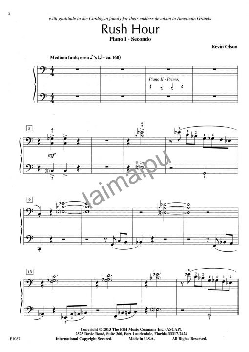 有示范、4-5级、钢琴八手联弹、闲适趣味的合奏好曲。