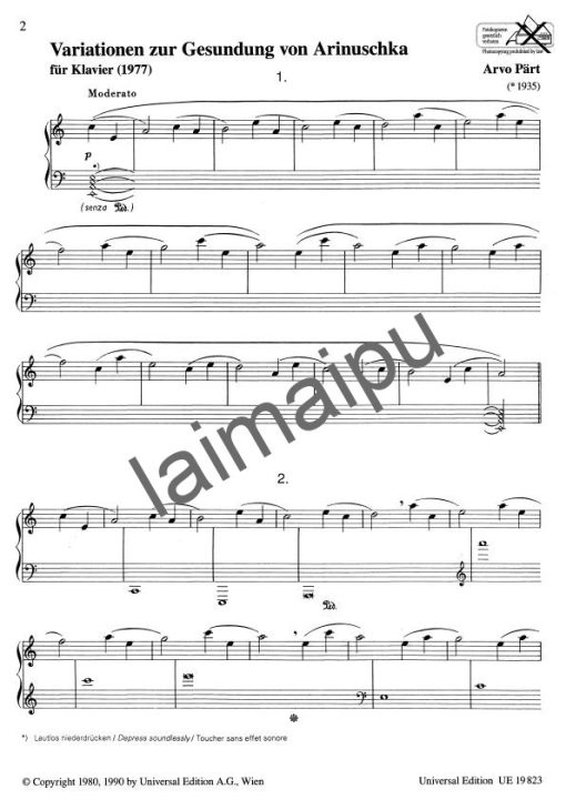🔊 帕尔特: 阿瑞纽胥卡的复原变奏曲、阿莉娜 (Arvo Part: Variationen Zur Gesundung Von Arinuschka; Fur Alina)