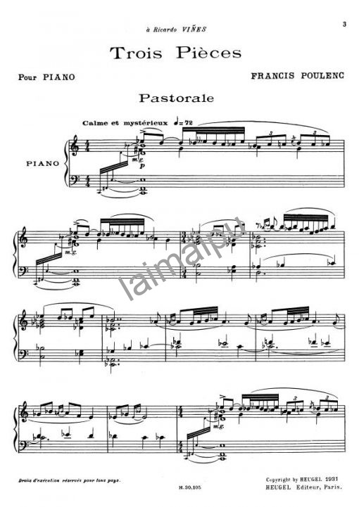 🥇🔊 普朗克: 3 首小品 (Poulenc: Trois Pieces pour Piano)