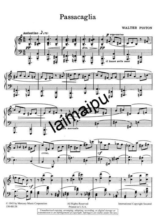辟斯顿: 帕萨卡里亚舞曲 (Piston: Passacaglia)