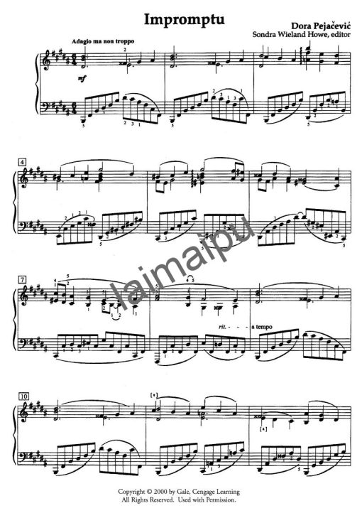 佩亚切微克是少数的克罗地亚女姓作曲家,在短短 38 年的生命中 (因难产而死亡),她写下了不少作品,像是交响曲、声乐作品,或钢琴作品等。这两个作品是她众多钢琴作品的代表作之一,后浪漫的风格,一些大胆不和谐音的使用,使的作品听来更具戏剧性。