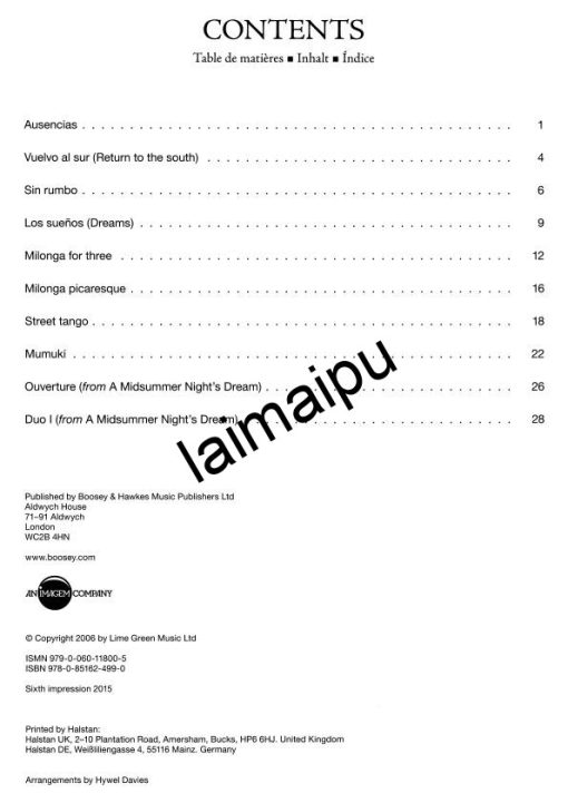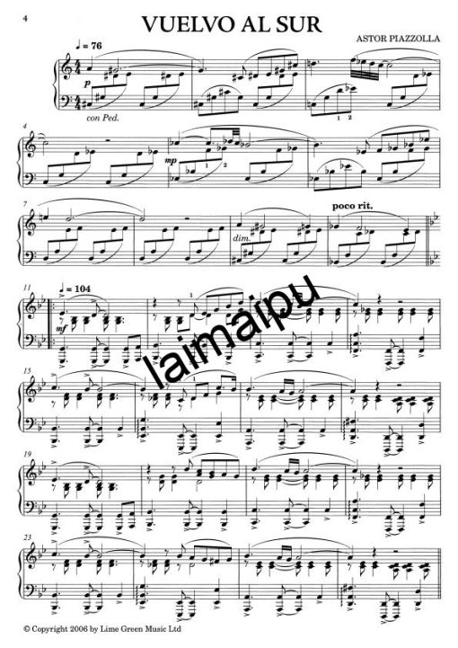 包括10首新的钢琴改编曲,以前从未印刷过的皮耶佐拉的感性音乐。